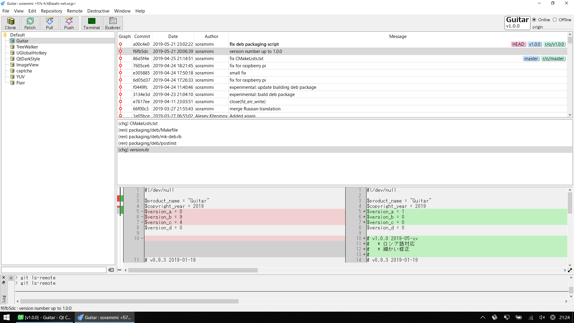 Guitar is a git GUI in Qt5.